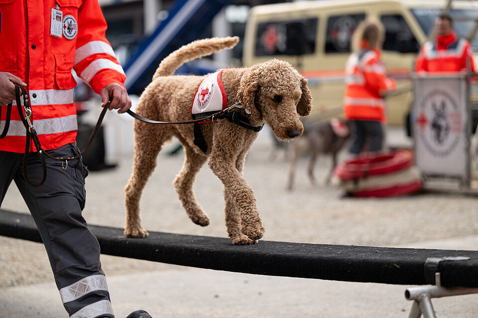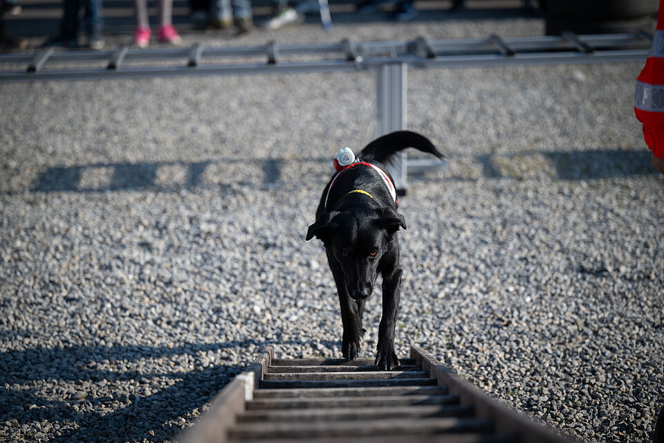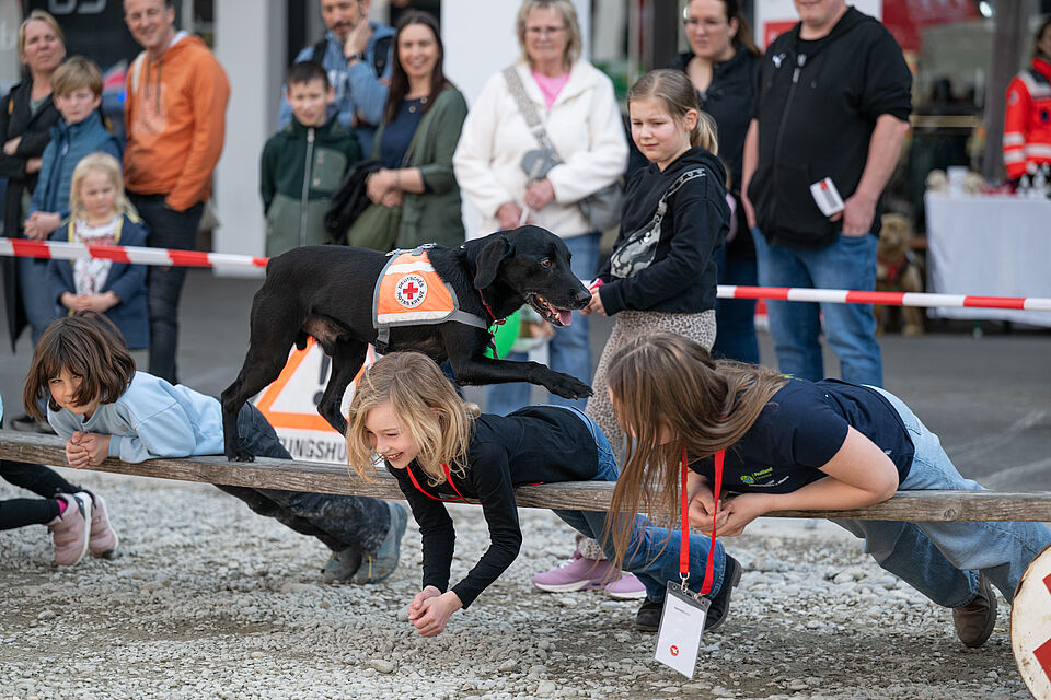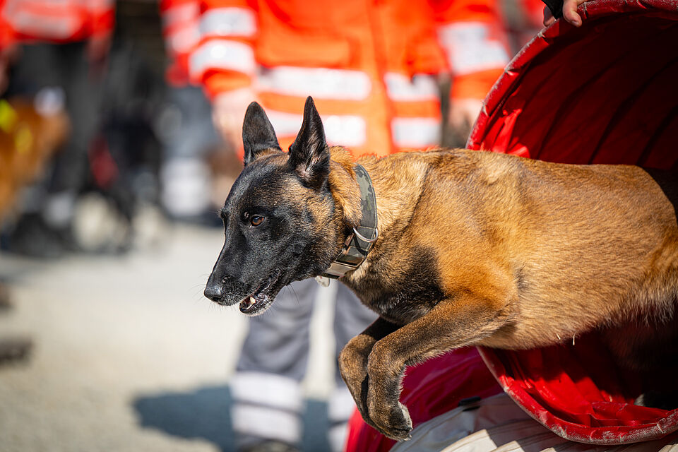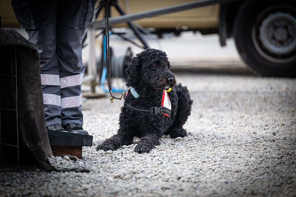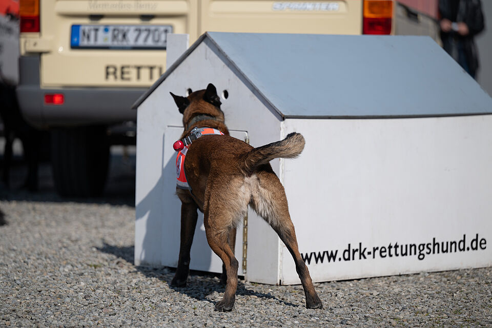 Am 20.03.2026 war es wieder soweit. Unsere größte Vorführung im Jahr auf der Internationalen Bodenseemesse in Friedrichshafen stand bevor. Bei dieser Messe nimmt unsere Bereitschaft traditionell auf Einladung der Messe Friedrichshafen seit Jahrzenten teil und zeigt am Wochenende zusammen mit den Kameraden der DRK Rettungshundebereitschaft Ravensburg das Können der Hunde. Logistisch ist dies durchaus ein Aufwand um alles Material und unsere Hunde dort hin- und unterzubekommen. Mit mehreren Dienstfahrzeugen, einem LKW und mehreren Anhängern ging es daher Freitags aufs Messegelände. Dort wurde dann fleißig unsere Standfläche im Freigelände aufgebaut und alles für das Wochenende vorbereitet. Neben vielen Vorführungen von unseren Hundeführern konnte man sich an unserem Infostand über die Rettungshundearbeit informieren. Natürlich kam an diesem Wochendende trotz wenig freier Zeit die Kameradschaft nicht zu kurz und jeder freute sich schon auf das Wiedersehen mit den Kameraden aus Ravensburg. Nach zwei stressigen, aber auch sehr schönen Vorführungstagen mit vielen leuchtenden Kinderaugen ging es am Sonntag ans Abbauen unseres Standes, alles wieder einpacken, verladen und dann nach einem gemeinsamen Abschied wieder zurück nach Hause. Der nächste IBO Termin steht schon im Kalender 2027 und wir freuen uns schon auf das nächste Jahr!